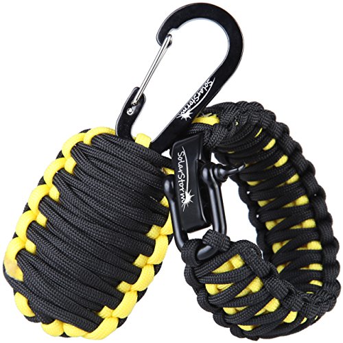 All images of Dimples Excel "Adventure" Set: Parachute Cord Paracord Survival Bracelet for Wrist Approx.18cm-20cm (7"-8") with Stainless Steel Black Bow Shackle + Carabiner "Grenade" Survival Kit