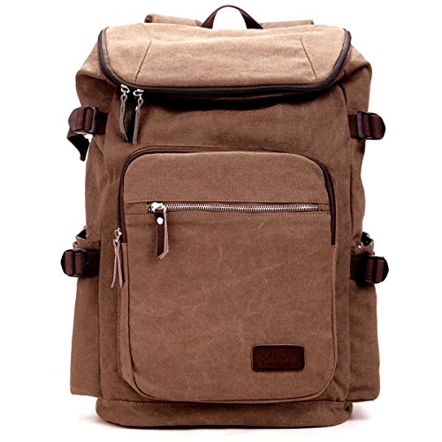 Eshow Men's Retro Canvas Travel Hiking Backpack, Brown
