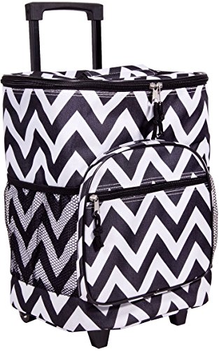 All images of Black White Chevron Stripe Print Insulated Rolling Cooler Bag with Telescoping Handle, 16-inch, 21 Quart Wheeled Cooler