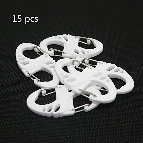 All images of Holdding 15 Pcs White Color 50-mm S-biner Carabiner Plastic Clip Snap Hook for Camping or Backpack Gear/ Hang Buckle for Holding Keys or Other Small Items Together