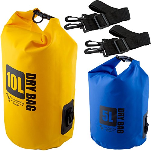 (2 Pack) The Friendly Swede Compact Dry Bag, Yellow and Blue, 10 L + 5 L