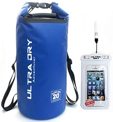 Premium 20 l blue Waterproof Bag, Sack with white phone dry bag and long adjustable Shoulder Straps Included,