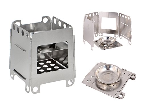 All images of TMS® Outdoor Cooking Camping Hiking Folding Steel Wood Stove Pocket Alcohol Stove