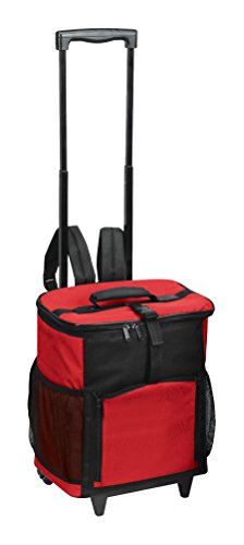 TravelWell 48 Can Wheel Rolling Cooler Shuttle with Tray Convertible Backpack Cooler, Red