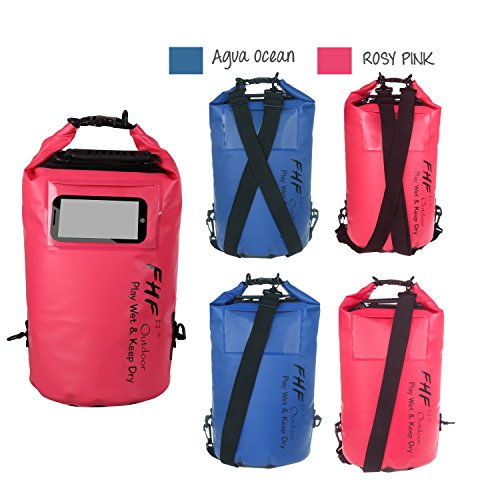 All images of Heavy Duty 20l Roll Top Clousure Waterproof Dry Bag with Transparent Window for Smartphone and Upgraded Waterproof Performance/capabilities with Extra Layer of Inner Pvc Film (Rosy Pink)