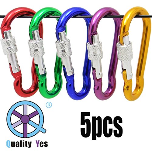 All images of QY 5PCS Colorful 8 Shape Aluminum Screw-Locking Ring Outdoor Spring Snap Multiple Use Hook